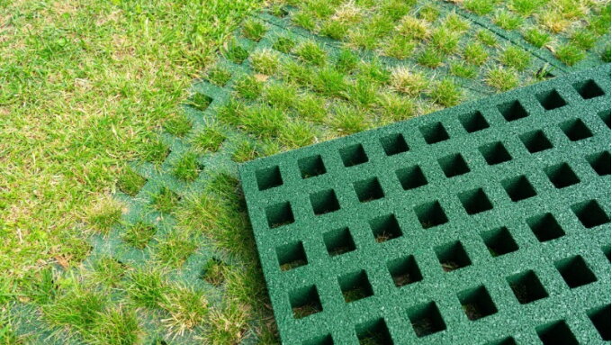 Een mooi voordeel: het gras groeit door de tegels heen. Daardoor blijven ze na verloop van tijd bijna onzichtbaar in je gazon